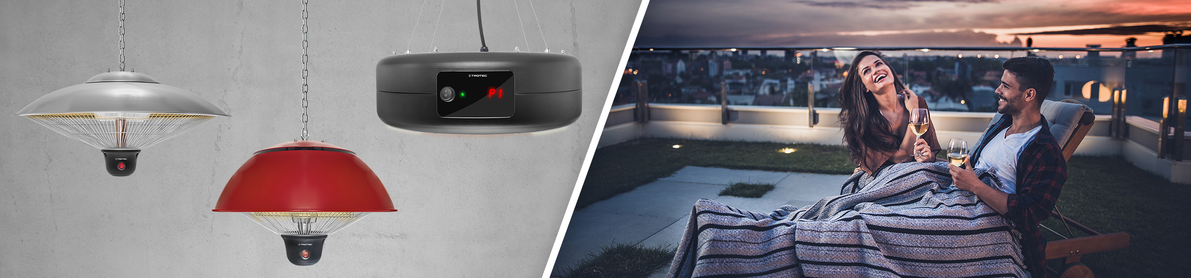 Genießen Sie im Frühjahr und Winter angenehme Abende unter glasklarem Sternenhimmel. Unsere neuen Terrassen-Heizstrahler der IRS-Serie, gefertigt aus hochwertigem Edelstahl, spenden nicht nur wohltuende Wärme auf dem Balkon, auf der Terrasse oder im Garten, sie sehen dabei auch noch unverschämt gut aus. Wer auf die Mobilität der flexibel einsetzbaren Standstrahler verzichten kann, findet in den stylischen Decken-Heizstrahlern IR 2000 SC, IR 1550 SC und IR 1510 SC eine stillvolle Möglichkeit, um überdachte Außenbereich in kuschlig warme Wohlfühloasen zu verwandeln. Ganz einfach auf Knopfdruck – ohne lange Vorheizzeit! Eine schnelle Wärme im Innenbereich spenden die Konvektoren TCH 2301 E, TCH 2311 E sowie TCH 25 E, unsere formschönen Neuzugänge in der TCH-Serie.
