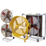 Der Trommelventilator TTW 25000 S mit variablem Neigungswinkel erreicht selbst hohe Wände und Decken – auch für den Outdoor-Einsatz geeignet.