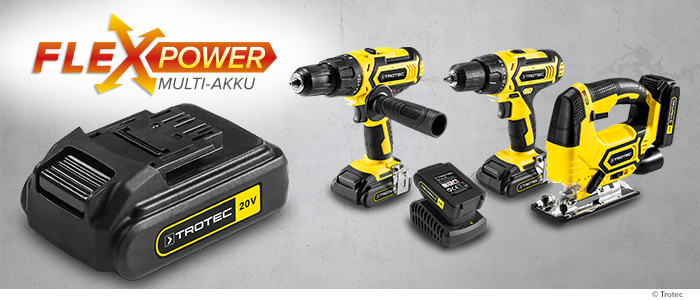Flexpower, l’innovativo sistema di alimentazione multiplo a batteria di Trotec, ha conquistato artigiani e appassionati del fai da te a tal punto che la batteria di ricambio è andata subito a ruba. Con Flexpower avete tutto l’equipaggiamento occorrente per impieghi flessibili e prolungati senza dover disporre di batterie e caricatori superflui. Non dovrete più perdere tempo nel cercare la batteria adattabasterà cambiare l’attrezzo, e non la batteria. Meno male allora che la batteria di ricambio Flexpower 20V 1.500 mAh è di nuovo disponibile fin da subito!