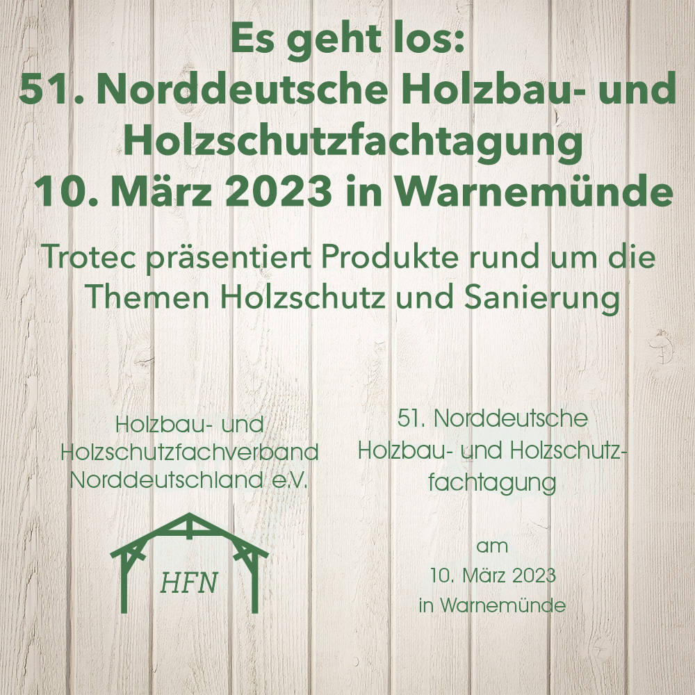 Es geht los: 51. Norddeutsche Holzbau- und Holzschutzfachtagung 10. März 2023 in Warnemünde. Trotec präsentiert Produkte rund um die Themen Holzschutz und Sanierung