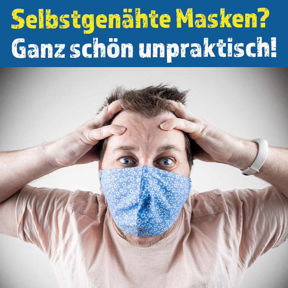 Immer mehr Länder gehen dazu über, eine allgemeine Mundschutzpflicht beim Einkaufen und im öffentlichen Nahverkehr zu verhängen. Wer noch keine Schutzmaske hat, muss sich jetzt also sputen. Andernfalls drohen vielerorts bereits empfindliche Bußgelder. Wer nun aber glaubt, dass es ausreichend ist, die OP-Maske vom letzten Karneval herauszukramen, der irrt! Die sogenannten Mund-Nasen-Schutzmasken sind Einwegartikel, deren Schutzwirkung bei einer mehrmaligen Verwendung nicht garantiert ist. Selbst wenn Virologen wie Christian Droste von der Berliner Charité zuversichtlich sind, dass sich Masken mit Temperaturen um die 80 Grad Celsius im Backofen desinfizieren lassen – förderlich für die Materialqualität ist diese Hitzebehandlung nicht! Im schlechtesten Fall reißen durch die Mehrfachnutzung gerade dann die zur Fixierung notwendigen Gummibänder, wenn es am wenigsten passt!