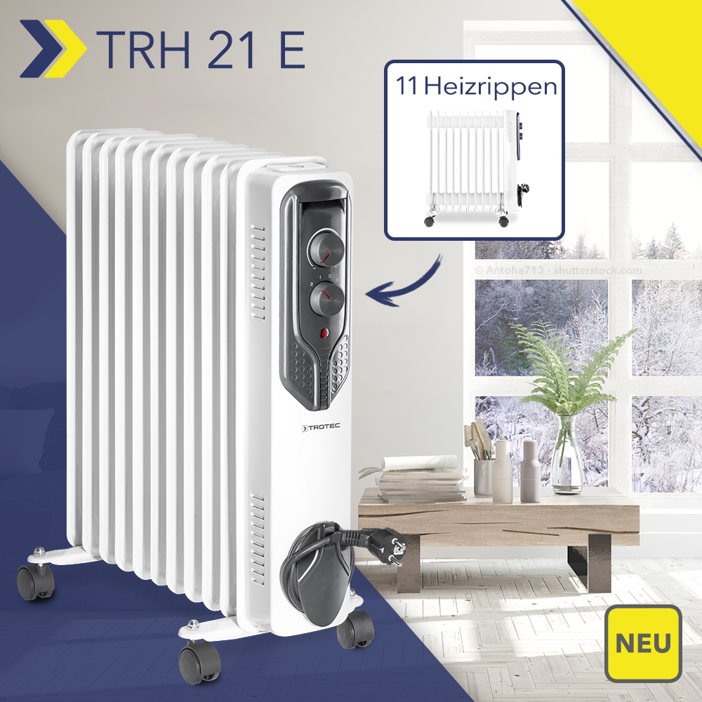 Perfekt für alle Frostbeulen: Nur 8 Minuten braucht der endlich lieferbare TRH 21 E nach dem Einschalten, um mit voller Leistung zu heizen. Und nach dem Abschalten gibt er noch extra lange Wärme ab, weil sein Thermo-Öl über eine hohe Speicherkraft verfügt. Diese effektive neue Heizalternative ist für praktisch jeden Einsatz im privaten Umfeld bestens geeignet – als zuverlässige Zusatzbeheizung an kalten Wintertagen, als temporäre Grundbeheizung von Garagen oder Kellern und auch als Frostwächter.