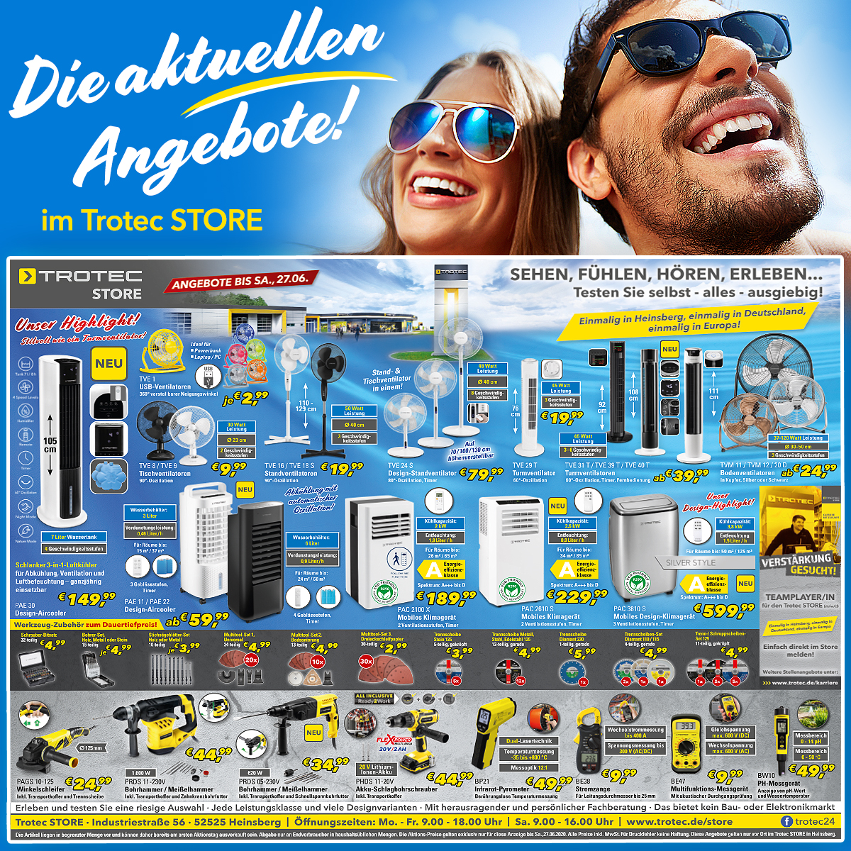 *Die Artikel liegen in begrenzter Menge vor und können daher bereits am ersten Aktionstag ausverkauft sein. Abgabe nur an Endverbraucher in haushaltsüblichen Mengen. Die Aktions-­Preise gelten exklusiv nur für diesen Newsletter bis Sa., 27.06. und sind nur bei Trotec vor Ort in Heinsberg gültig.