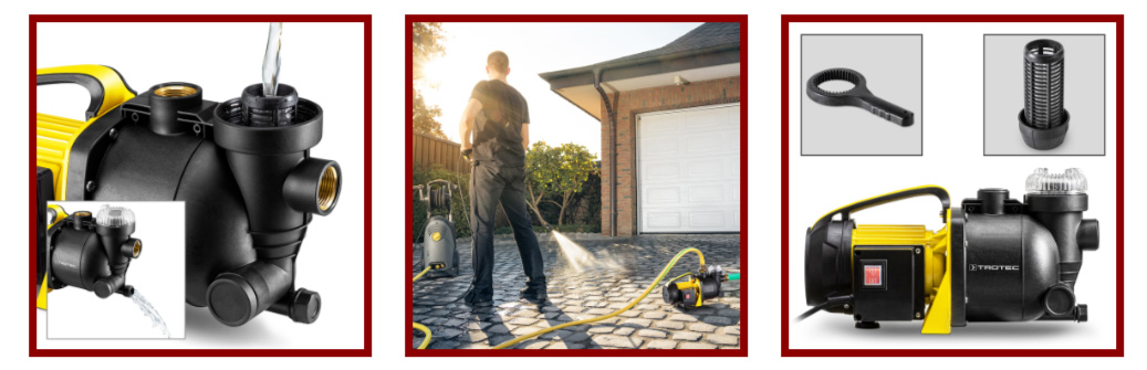 Gegen Schmutzpartikel ab einer GröĂe von 1 mm verfĂŒgt die TGP 1005 E ĂŒber einen praktischen Vorfilter, der das geförderte Wasser nicht nur reinigt, sondern auch die Pumpe vor Verschmutzung und innerer BeschĂ€digung schĂŒtzt. Das robuste, korrosionsbestĂ€ndige PumpengehĂ€use besteht aus schutzlackiertem Metall und schlagfestem Kunststoff. Zudem ist die Gartenpumpe nach Schutzart IPX4 von allen Seiten gegen Spritzwasser geschĂŒtzt. DarĂŒber hinaus verhindert die integrierte Thermoschutzschaltung zuverlĂ€ssig eine Ăberhitzung des Motors. FĂŒr den flexiblen Einsatz und einen einfachen Transport ist das 6,5 kg leichte GerĂ€t mit einem ergonomisch geformten Tragegriff ausgestattet. Beim stationĂ€ren Betrieb an einem festen Standort kann der stabile PumpenfuĂ dank vorhandener Lochbohrungen sicher am Untergrund befestigt werden.