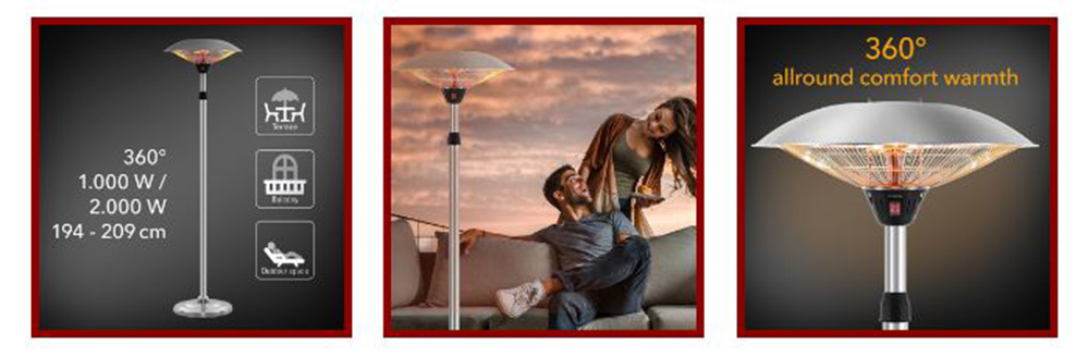 Selbst der lĂ€ngste Sommer geht irgendwann zu Ende. Damit Sie den heimischen Balkon oder die ĂŒberdachte Terrasse auch in den Ăbergangszeiten oder sogar das ganze Jahr lang nutzen können, empfiehlt sich der Ă€sthetische Design-Standheizstrahler IRS 2020 aus hochwertigem Aluminium und rostfreiem Edelstahl als flexibel einsetzbare WĂ€rmequelle. Und fĂŒr gemĂŒtliche Grillabende oder Gartenparties ist der schlanke Infrarot-Strahler die praktische und optisch besonders attraktive Heizlösung. Ebenso ermöglicht der robuste und spritzwassergeschĂŒtzte Halogenheizer in Gastronomiebetrieben einen spĂŒrbaren Zuwachs der Kunden im AuĂenbereich. Auch bei ausbleibender Sonne und insbesondere in Zeiten, wo viele GĂ€ste die SitzplĂ€tze der AuĂengastronomie bevorzugen.