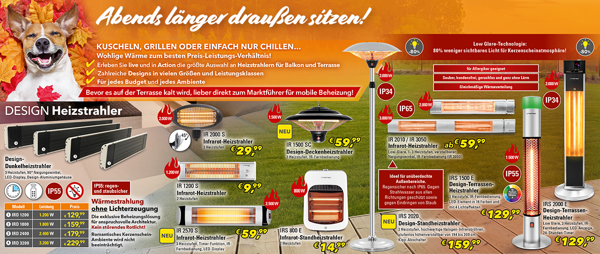 Entdecken Sie unser großes Sortiment an Terrassenheizstrahlern!