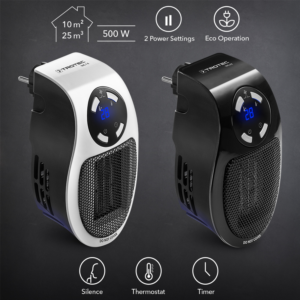 Mit den kaum mehr als handgroßen und extrem-leichten Steckdosen-Heizungen TFC 1 E / TFC 2 E ist zu Hause wie auf Reisen immer eine wohlige Wärmequelle vor Ort. Mit solch einem mobilen Keramik-Heizlüfter im Koffer gehören kalte Füße selbst im alpinen Winterurlaub der Vergangenheit an. Und da diese Mini-Heizlüfter direkt in die Steckdose eingesetzt werden, nehmen sie auch im Betrieb kaum Stellfläche ein und ersparen das lästige Installieren von Kabeln.