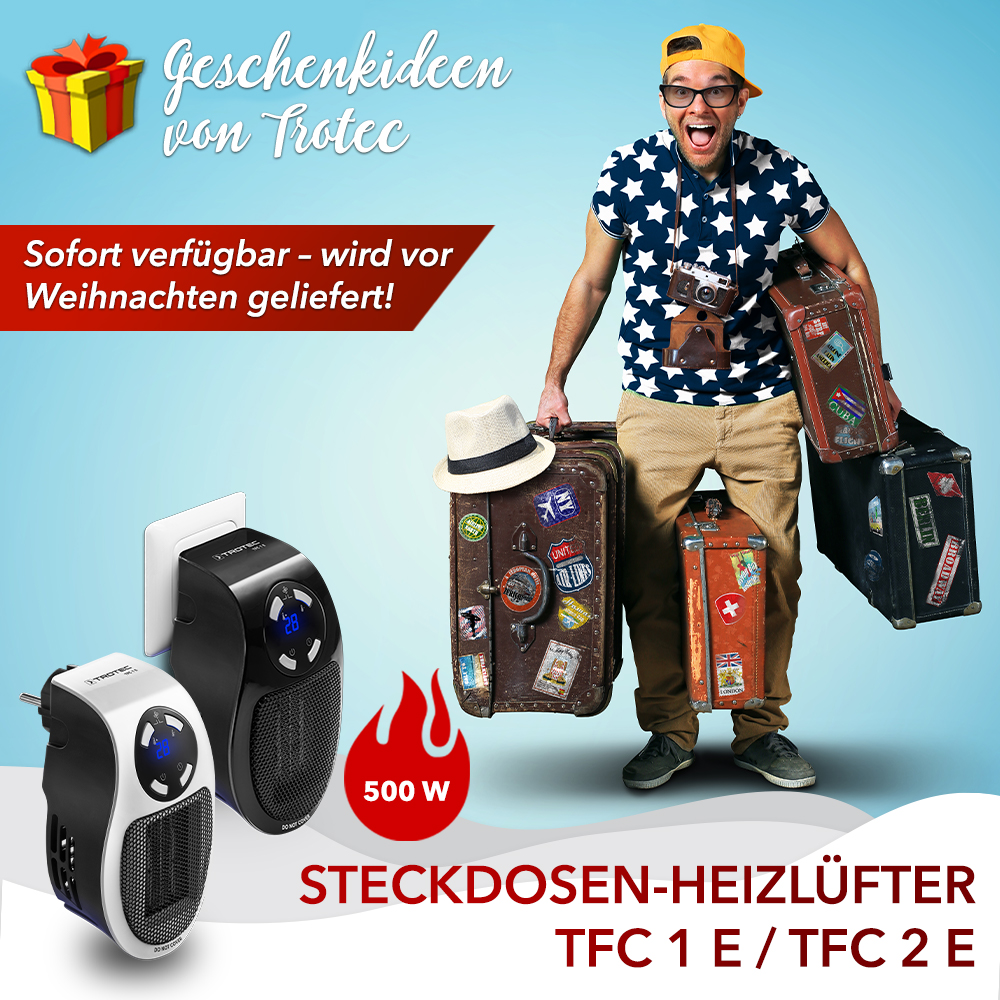 Weihnachten steht vor der Tür ? und Sie sind noch auf der Suche nach einem Weihnachtsgeschenk? ? Bevor Sie bei Socken für den Papa oder Pralinen für die Mama landen: Wie wäre es mit Geschenken, die wirklich gebraucht werden? Mehr noch: Geschenke, die wirklich echte Freude machen, weil sie genau zu dem Beschenkten passen? Deswegen haben wir für Sie die besten Weihnachtsgeschenke gesammelt, die garantiert gut ankommen! Lassen Sie sich von unseren Blogbeiträgen zum Thema Weihnachtsgeschenke 2021 inspirieren. Heute mit einer Geschenkidee für alle Reiselustigen und Weltenbummler. ? Mit einem Steckdosen-Heizlüfter von Trotec verschenken Sie dieses Jahr nicht nur einen schönen Mini-Heizer, der in jeden Koffer passt, sondern auch ein Stück Vorfreude zum Beispiel auf den nächsten Städtetrip.