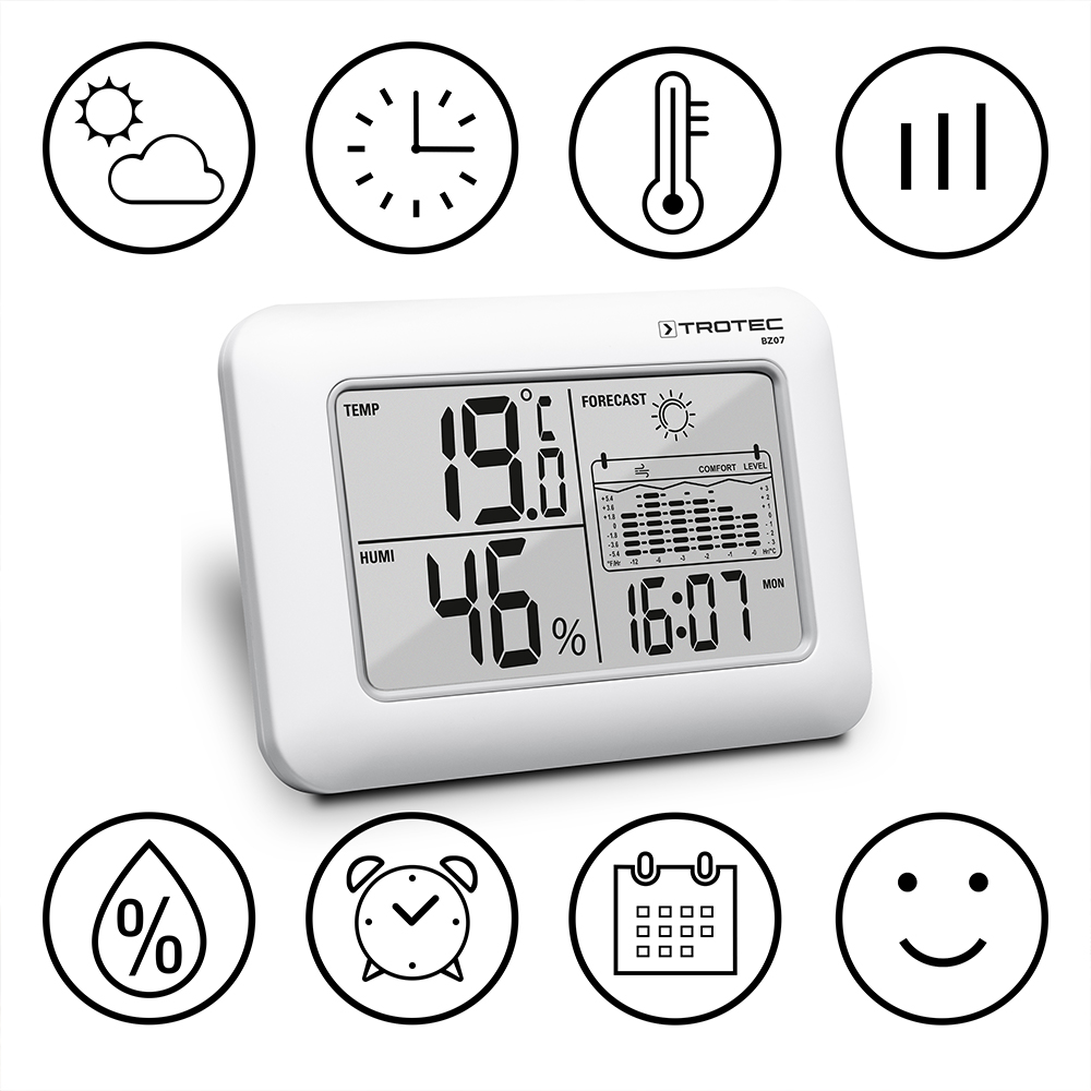 Zu warm, zu kalt, zu schwül oder zu trocken – jeder hat ein anderes Empfinden. Mit dem BZ07 behalten Sie beim Raumklima stets den Überblick und können anhand der Messwerte die Bedingungen bewusst zum Besseren verändern um sich rundum wohl zu fühlen.