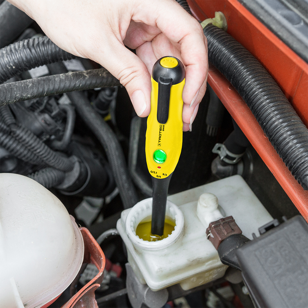 Der handliche Bremsflüssigkeitstester BW05 ist das perfekte Messgerät, um sowohl in der Kfz-Werkstatt als auch zu Hause in der Garage schnell und präzise den Wasseranteil in der Bremsflüssigkeit von Fahrzeugen zu überprüfen. Der BW05 dient zur Kontrolle der drei wichtigsten Bremsflüssigkeitssorten DOT3, DOT4 und DOT5.1 und ist denkbar einfach einsetzbar.