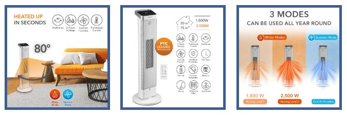 - Zwei Heizstufen (1.800 W/2.500 W)