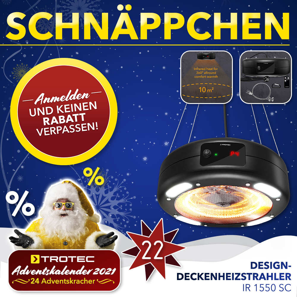 Um interessante Sparangebote per E-Mail zu erhalten, melden Sie sich einfach und kostenlos zum TROTEC ADVENTSKALENDER an. Bis zum 24. Dezember sind noch viele Überraschungen für Sie drin!?