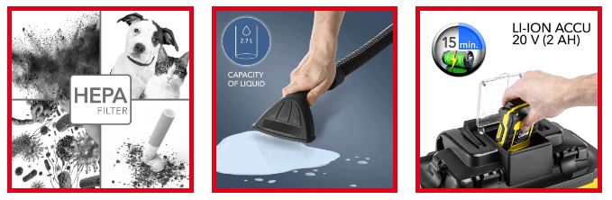 AKKU-STAUBSAUGER VC 15-20V – KABELLOSER AKKU-NASS-TROCKENSAUGER MIT AUSBLASFUNKTION, HEPA-FILTER UND VIELSEITIGEM ZUBEHÖR!