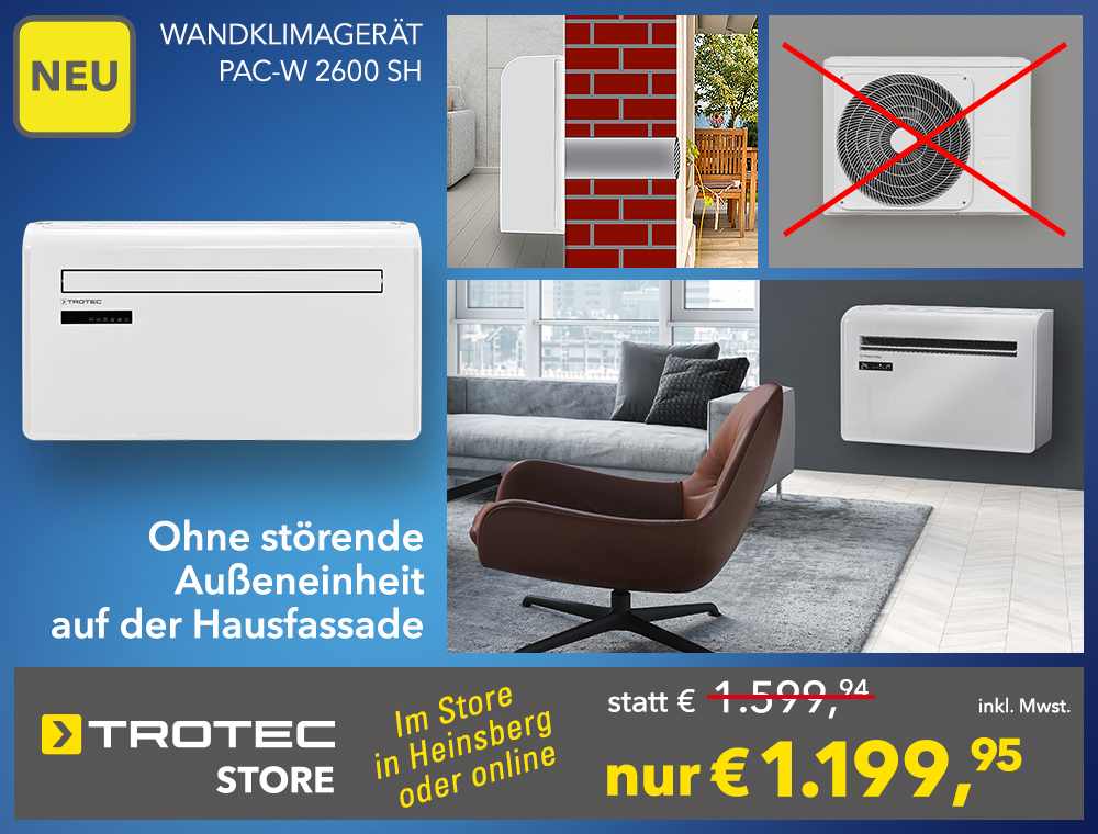 Ein Besuch im Trotec STORE lohnt sich immer. Ob Powertools, Luftentfeuchter, Luftbefeuchter, Klimageräte, Ventilatoren, Gartenpumpen, Terrassen-Heizstrahler, Luftreiniger und vieles mehr – im Trotec STORE können Sie sich von der Qualität und den Eigenschaften sämtlicher Trotec-Produkte live überzeugen. Selbstverständlich beraten wir Sie ausführlich zu jedem Produkt und passgenau für Ihren Anwendungsfall.