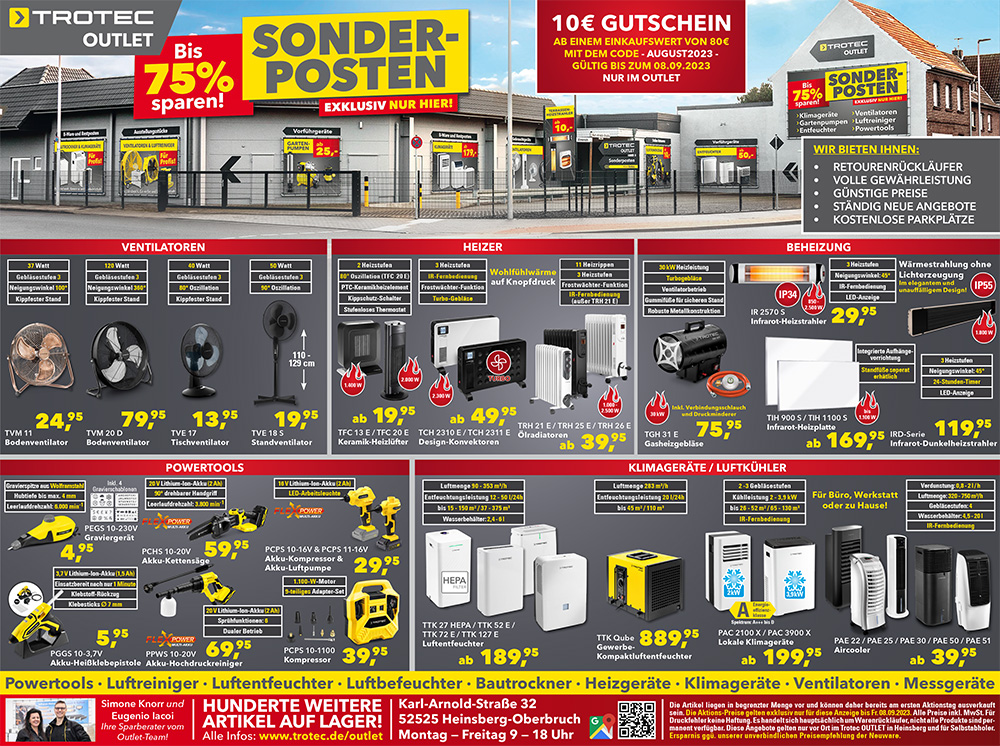 Erleben Sie die aktuellen Angebote im TROTEC STORE und OUTLET!👌