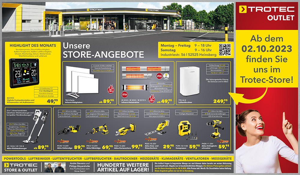 Erleben Sie die aktuellen Angebote im TROTEC STORE und OUTLET!👌