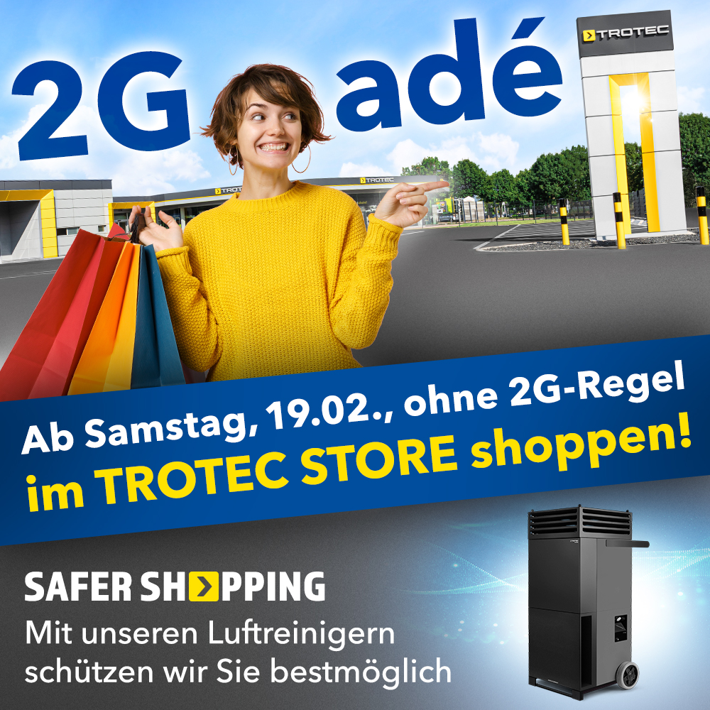 Wer also aufgrund der 2G-Regel schon länger nicht mehr im Trotec STORE oder OUTLET war, hat nun wieder Gelegenheit, die große Auswahl an Powertools, Luftentfeuchtern, Elektroheizern, Luftreinigern, Akku-Staubsaugern, Luftbefeuchtern und vielen weiteren Gerätekategorien zu entdecken. Unser Produktsortiment wird ständig erweitert und viele Neuheiten warten auf Sie!
