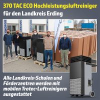 Mehr als 40 Unternehmen aus der Lüftungsbranche hatten sich um die Ausschreibung der Stadt Erding bemüht. Den Zuschlag erhalten hat das niederbayerische Unternehmen Schenk & Plomer GmbH mit Sitz in Altheim, das nun sämtliche Schulen wie Gymnasien, Realschulen, Berufsschulen, Förderzentren, Musikschulen, Fach- und Berufsoberschulen im gesamten Landkreis Erding mit insgesamt 370 mobilen TAC ECO Hochleistungsluftreinigern von Trotec ausstattet.