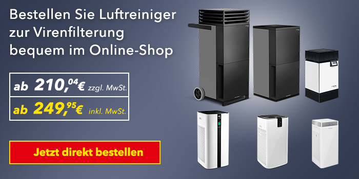 Zahlreiche wissenschaftliche Studien belegen die hohe Wirksamkeit der technischen Raumluftreinigung im Kampf gegen das Coronavirus. Geeignete Geräte wie die Trotec-Luftreiniger der TAC-Serie und AirgoClean-Serie senken die Virenlast in einem Raum nachweislich um mehr als 99 Prozent – dauerhaft und selbst bei geschlossenem Fenster. Bei Trotec erhalten Sie mobile Luftreiniger für alle Raumgrößen und in nahezu allen Preisklassen. Was alle Trotec-Luftreiniger gemeinsam haben: hocheffiziente HEPA-Filter und ein hohes Luftvolumen, um Einzelbüros, Großraumbüros aber auch Sozialräume, Besprechungsräume und Wartebereiche dauerhaft virenfrei zu halten und das indirekte Ansteckungsrisiko kontrolliert zu senken. Eine gute Investition in den Gesundheitsschutz der Beschäftigten und ein hoher Schutz vor Corona-bedingten Betriebsschließungen.