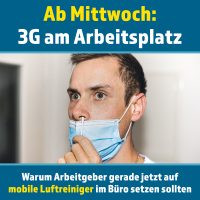Denn: „3G vermittelt ein gefährliches Gefühl der Sicherheit“, warnt Deutschlands bekanntester Aerosolforscher Dr. Gerhard Scheuch. Die neu beschlossenen Maßnahmen hätten blinde Flecken, wodurch sich das Ansteckungsrisiko am Arbeitsplatz trotz 3G sogar noch erhöhen könne. Scheuch rät Arbeitgebern daher eindringlich, mit mobilen Luftreinigern und CO2-Messgeräten einen zusätzlichen Schutz vor virenbehafteten Aerosolen am Arbeitsplatz zu etablieren.