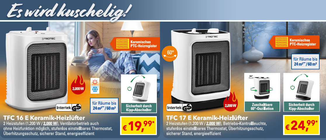 Unsere Winterangebote der aktuellen Werbung lassen kaum Wünsche offen, haben Sie sich selbst mal wieder eine kleine Freude bereitet? Dann wird es aber Zeit! Sichern Sie sich Heizstrahler für schöne Abende zu Hause oder fleissige Stunden auf der Baustelle, Elektrowerkzeuge und Messgeräte für Ihre nächsten Projekte, Luftentfeuchter für ein angenehmes Raumklima und und und!