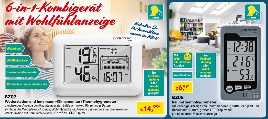 Behalten Sie wichtige Temperaturen und Werte im Blick. Die handlichen Trotec Messgeräte liefern alle wissenswerten Daten und Fakten, damit Sie sich im Alltag auf das Wesentliche konzentrieren können, entspannt und stressfrei.