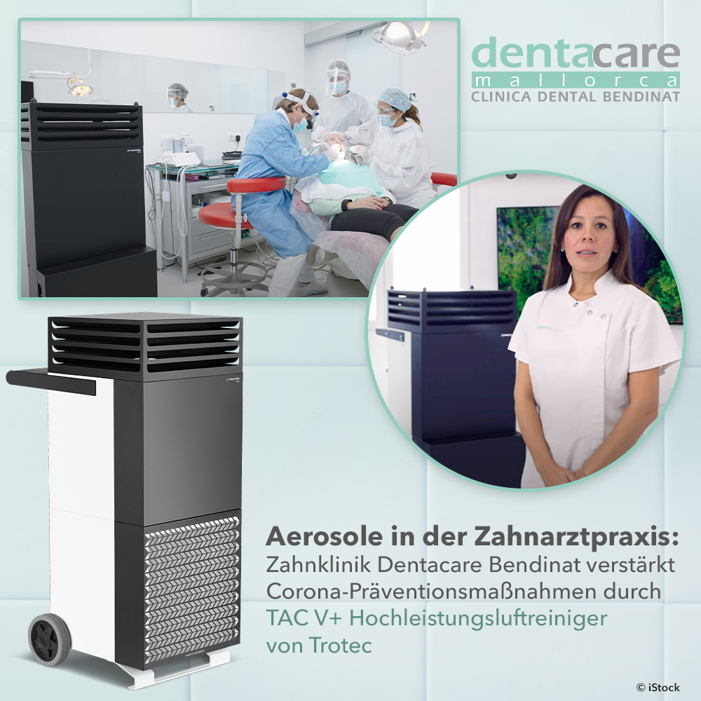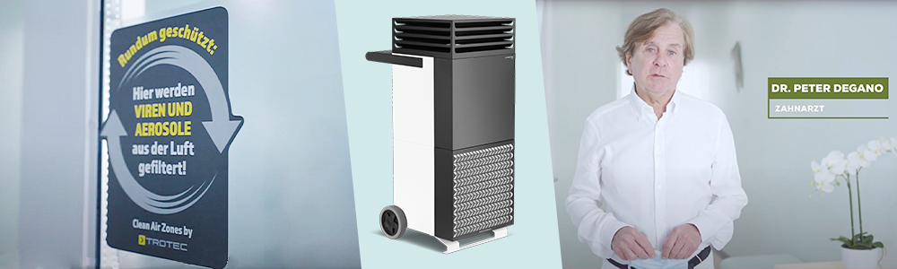Um das in der Zahnarztpraxis vergleichsweise hohe luftgetragene Ansteckungsrisiko auf ein Minimum zu reduzieren, hat Dr. Degano seine Praxis mit TAC V+ Hochleistungsluftreinigern ausgestattet. „Der Luftreiniger von Trotec gibt mir und meinen Helferinnen während der Behandlung ein sicheres Gefühl.“, sagt Degano. Natürlich hat er sich nicht aufgrund eines Bauchgefühls für die Geräte von Trotec entschieden. Wenn Ärzte Entscheidungen treffen, dann zumeist aufgrund wissenschaftlich fundierter Fakten und Studien. Überzeugt hat Delgado eine vielbeachtete Studie des renommierten Aerosol-Experten Prof. Dr. Christian Kähler, der an der Universität der Bundeswehr München das Institut für Strömungsmechanik und Aerodynamik leitet. Kähler hat in unzähligen Tests und Versuchen nachgewiesen, dass sich das aerosole Ansteckungsrisiko durch den Einsatz geeigneter Raumluftreiniger mit H14-HEPA-Filtertechnik (EN 1822-1) erheblich reduzieren lässt. Als Referenzgerät kam ein mobiler TAC V+ Hochleistungsluftreiniger von Trotec zum Einsatz.