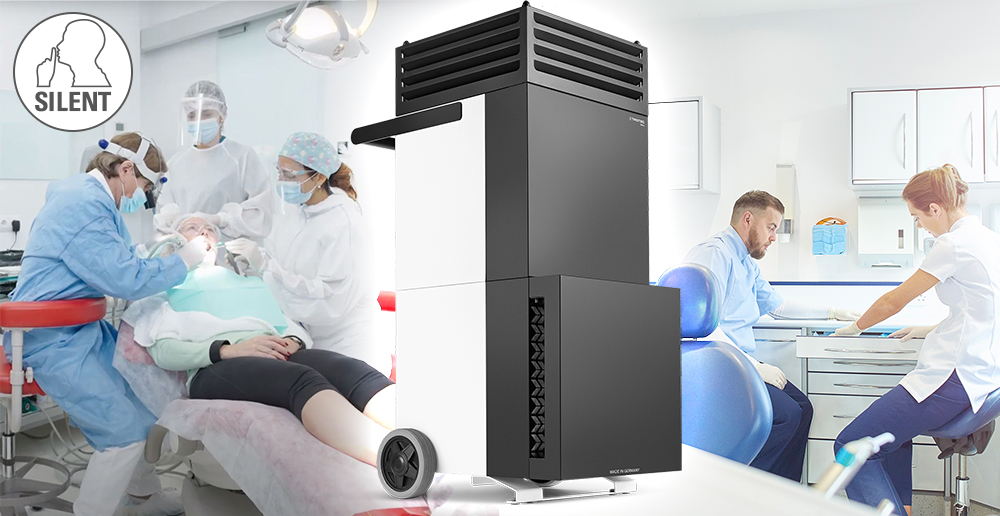 Die Luftqualität in der Zahnarztpraxis ist mit bloßem Auge nicht erkennbar, sie hat es aber mitunter „in sich“. Aerosole, die beispielsweise bei der Prophylaxe-Behandlung, beim Bohren aber ebenso bei operativen Eingriffen entstehen. Und diese Aerosole, so die einhellige Meinung der Wissenschaft, sind für rund 80 Prozent der Corona-Infektionen verantwortlich.