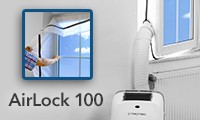 Viele Nutzer von mobilen Klimageräten, Luftentfeuchtern und auch von Wäschetrocknern stecken in der Regel den Abluftschlauch einfach durch ein geöffnetes oder gekipptes Fenster. Dies macht die Kühlung denkbar unwirtschaftlich, weil von außen immer wieder die warme Luft in den gekühlten Raum eindringt. Mit dem per Klettverschluss einfach anzubringenden AirLock 100 decken Sie die geöffnete Fensterspalte zuverlässig ab – und halten so die bereits gekühlte Luft in Ihren Räumen zurück.