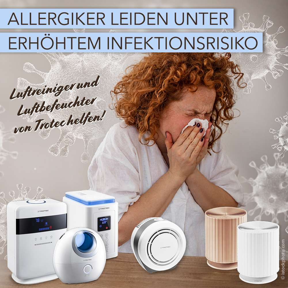 Wieso unterliegen ausgerechnet die im Sommer ohnehin leidgeprüften Allergiker auch noch einem erhöhten Ansteckungsrisiko durch das Corona-Virus? Die Erklärung ist, dass die Schleimhäute im oberen Atemwegssystem von Allergikern aufgrund einer Reizung mit Allergenen anschwellen. So werden diese durchlässiger für Viren, also auch für das Corona-Virus. Wer jetzt schlussfolgert, dass es also gilt diese Reizung zu vermeiden, liegt richtig – und sollte sich unseren Luftreiniger AirgoClean 10 E mit HEPA-Filter sowie unsere Luftbefeuchter der B- und der B-E-Serie genauer anschauen.