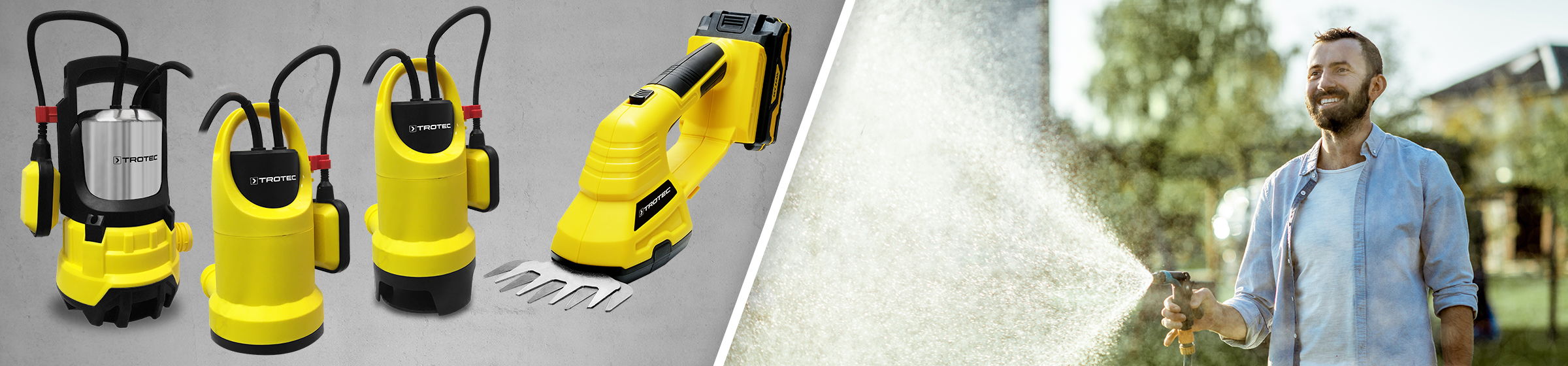 Sind Sie bereit für den Sommer? Unsere neuen Tauchpumpen der TWP-Serie sind es auf jeden Fall! Ganz gleich, ob Sie für die Bewässerung des Gartens den Gartenteich anzapfen oder Wasser aus einer Zisterne fördern möchte – Trotec hat für jeden Einsatzzweck die passende Schmutz- oder Klarwasser-Tauchpumpe im Angebot. Wie gewohnt in robuster Trotec-Ausführung, ausgestattet mit langlebiger Technik und bei Bedarf in witterungsbeständiger Edelstahlausführung. Perfekt geschnittene Rasenkanten, Hecken und Sträucher gelingen mühelos mit der praktischen Akku-Gras- und Strauchschere PGSS 10-20V – ganz ohne lästige Kabel. Der leistungsstarke Flexpower-Multi-Akku des Multitools ermöglicht Rückschnitte und Pflegeschnitte selbst im hintersten Winkel des Gartens.