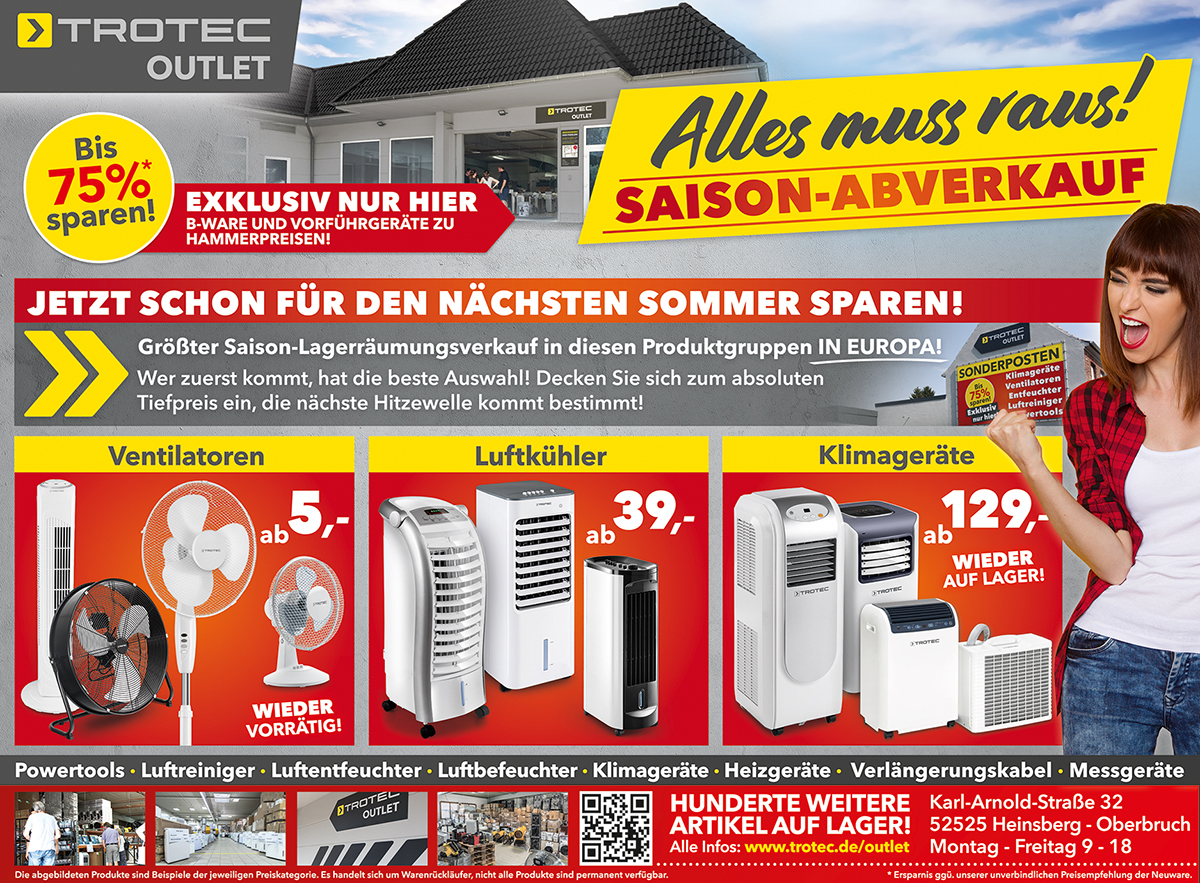 Jetzt tolle Rabatte und zahlreiche Schnäppchen in unserem Trotec STORE in Heinsberg ergattern! So schnell ist der Sommer noch nicht vorbei…