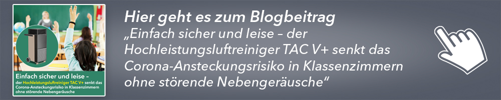 In nur 6-15 Minuten lässt sich die Virenlast in einem 80 m² großen Klassenraum mit einem TAC V+ Hochleistungsluftreiniger der Filterklasse HEPA (H14) halbieren. In kleineren Räumen erfolgt die Halbierung sogar bereits nach 3 Minuten. Nachgewiesen hat dies Professor Dr. Christian Kähler von der Universität der Bundeswehr München. Wissenschaftler der Goethe-Universität kommen zu ähnlichen Ergebnissen. Selbst mehrere kleinere Luftreiniger der Filterklasse HEPA (H13) sind in der Lage, die Aerosolkonzentration in einem Klassenzimmer in einer halben Stunde um 90 Prozent zu senken. Beide Forscherteams empfehlen aus wissenschaftlicher Sicht den Einsatz von geeigneten und ausreichend dimensionierten Luftreinigern in Schulen.