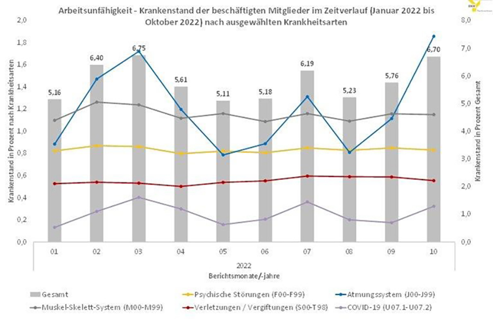 Trotz sinkender Corona-Infektionszahlen steigen die Krankenstände in vielen Unternehmen derzeit auf ein Rekordhoch und ein Ende dieser Krankheitswelle ist nicht in Sicht. Ungewöhnlich viele Beschäftige fehlen aufgrund von Krankschreibungen am Arbeitsplatz. Ursächlich dafür sind nicht etwa Coronaviren, sondern Atemwegsinfekte wie Erkältungen, akute Bronchitis oder die Grippe. Mediziner vermuten, dass das Immunsystem in den letzten zwei Jahren aufgrund von Maskenpflicht und Abstandsregeln zu wenig gefordert wurde und nun bei den bekannten Krankheitserregern wie Influenza oder auch dem RS-Virus (respiratory syncytial virus, kurz RSV) bei Kindern ein Nachholeffekt eintritt. Laut Robert Koch-Institut (RKI) ist zudem das zeitgleiche Auftreten mehrerer unterschiedlicher Atemwegserreger eine Ursache für die hohen Fallzahlen.