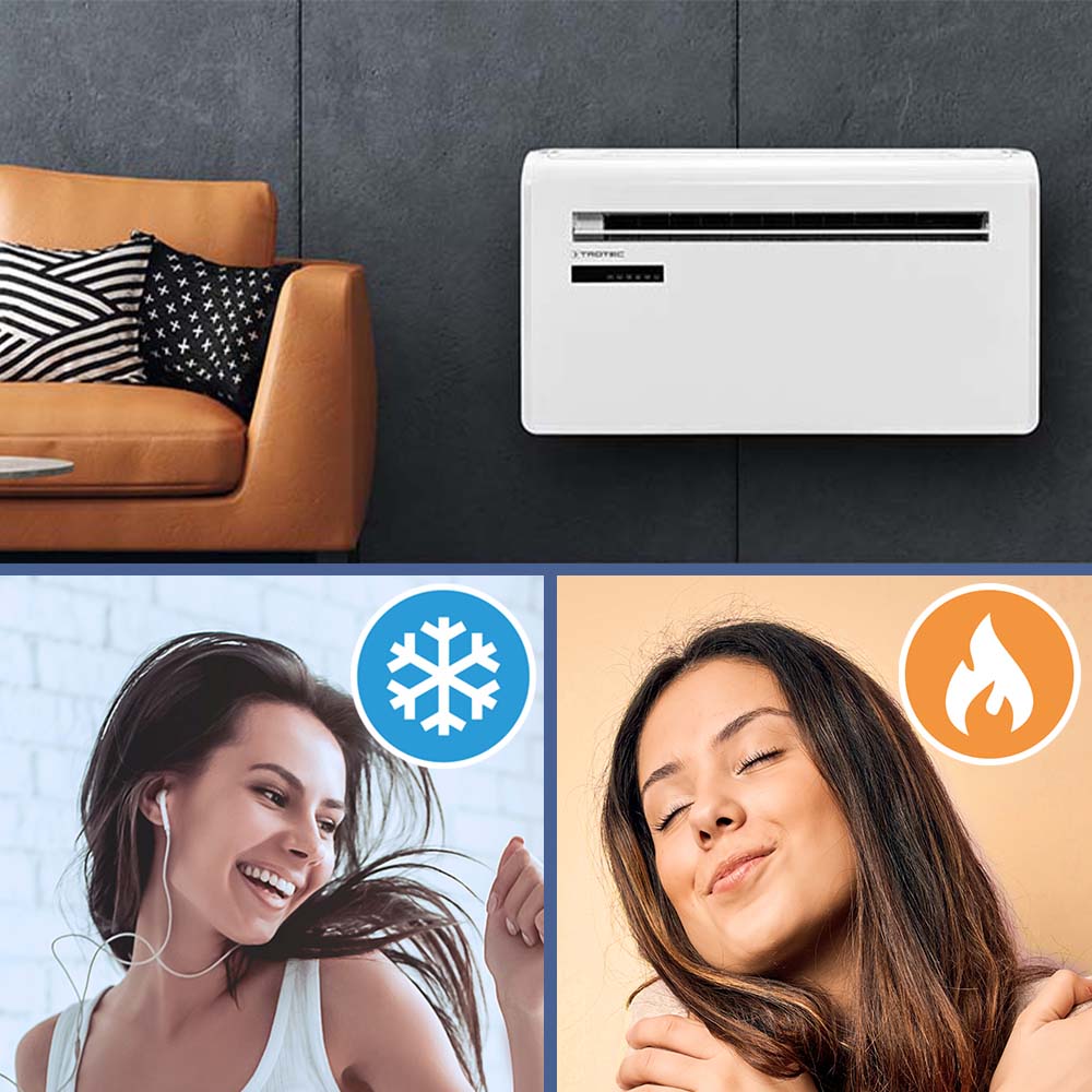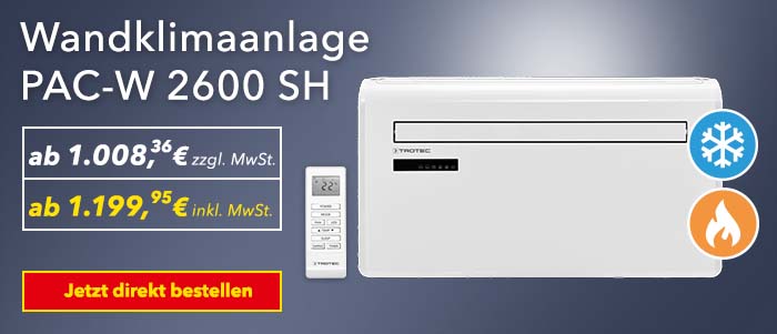 Ist die Anlage erst einmal im Haus oder in der Wohnung installiert, regelt das Klimagerät PAC-W 2600 SH die gewünschte Raumtemperatur vollautomatisch. Wird es im Winter kalt und soll die Gasheizung ausbleiben, spendet die Anlage mit ihrer starken Wärmepumpen-Heiztechnik eine sich schnell ausbreitende Wärme im Raum. Ist es im Sommer zu heiß und staut sich die Hitze im Innenraum, kühlt das Klimagerät aufgeheizte Wohn-, Schlaf- und Büroräume bis 34 m² bzw. 85 m³ auf angenehm kühle Raumtemperaturen herab.