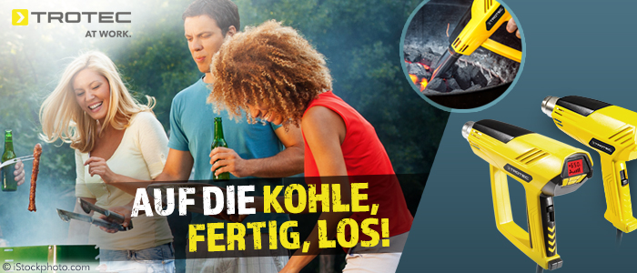 Perfektes Wetter zum Grillen! Wer keine Lust auf lange Warterei beim Anzünden der Grillkohle hat und keine chemischen Beschleuniger verwenden möchte, schnappt sich am besten eine unserer professionellen Heißluftpistolen mit passender Grillanzünder-Düse und im Handumdrehen kann der Grillspaß beginnen! Zudem eignen sich unsere Heißluftpistolen für viele weitere praktische Arbeiten, wie z.B. Autofolierungen, Verformungen von Kunststoffbauteilen und das Entfernen von Lacken und Farben etc.!