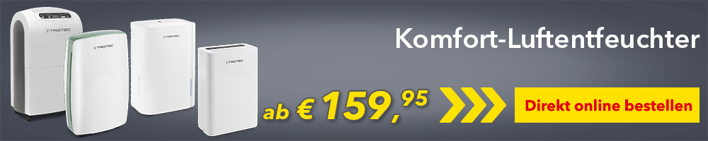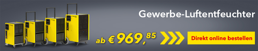 Zur Trockenhaltung von Raumgrößen über 10 m² und zur Trocknung nach Wasserschäden eignen sich ausschließlich Adsorptions-Luftentfeuchter oder Kondensations-Luftentfeuchter mit Kompressortechnik.