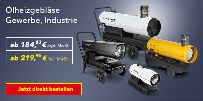 Starke Heizleistung für Profischrauber: Wann immer Sie eine schnelle und sofortige Lösung zur Schaffung eines angenehmen Garagenklimas benötigen – der Trotec-Online-Shop bietet eine riesige Auswahl an Ölheizgebläsen für professionelle Werkstätten und großzügig dimensionierte Garagen.