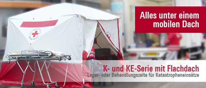 Bei Festivals, Konzerten und Großveranstaltungen aller Art werden sie aufgestellt, für Sanitäter und Ärzte sind sie für viele Stunden der Einsatzort. Oder auch in Notsituationen – zum Beispiel bei der Evakuierung von Menschen aus Gefahrensituationen. Die Rede ist von Zelten. Doch gemeint sind nicht die Schlafzelte, die für eine gewisse Camperidylle sorgen. Wenn es um viele Menschen, um Menschen in Notsituationen geht, dann ist die Rede von Behandlungs-, Lager oder sogar Katastrophenzelten. Dort sollen Patienten nicht nur warm und sicher untergebracht werden. Sie müssen unter Umständen auch behandelt werden können. Daher müssen die Zelte beste Qualität vorweisen – wie die Modelle der K- und KE-Serie mit Flachdach!