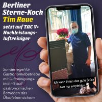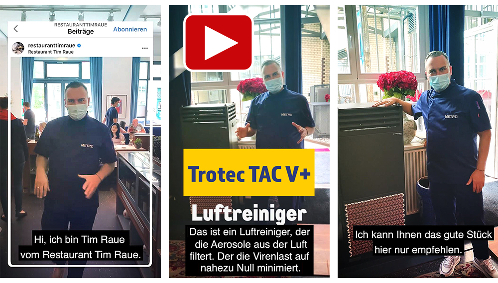 In seinem Video empfiehlt Sterne-Koch Tim Raue den Hochleistungsluftreiniger TAC V+ von Trotec. Mit virenfreier Luft sind die Gäste und das Personal besser geschützt. Ideal für die Wintersaison!