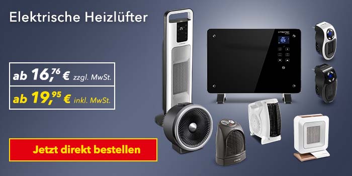Elektrische Heizlüfter wie die Keramik-Heizlüfter der TFC-Serie und die tragbaren Heizlüfter der TFH-Serie zählen zu den beliebtesten Schnellheizern. Die verwendete Heiztechnik ist unkompliziert, der Einstieg mit Preisen ab rund 20 Euro günstig und die Heizleistung mit bis zu 2.200 Watt absolut ausreichend, um einzelne Räume schnell und einfach auf angenehme Raumtemperaturen zu erwärmen.