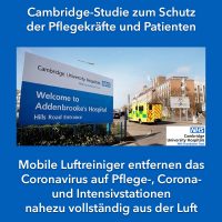 Um die Wirksamkeit der technischen Luftreinigung in besonders sensiblen Umgebungen zu untersuchen, starteten britische Wissenschaftler und Ingenieure der Universität Cambridge gemeinsam mit Ärzten des Adenbrookes‘ Hospital (Lehrkrankenhaus der Cambridge University Hospitals) auf dem Höhepunkt der zweiten Corona-Welle eine Studie zur Wirksamkeit von mobilen Luftreinigern.