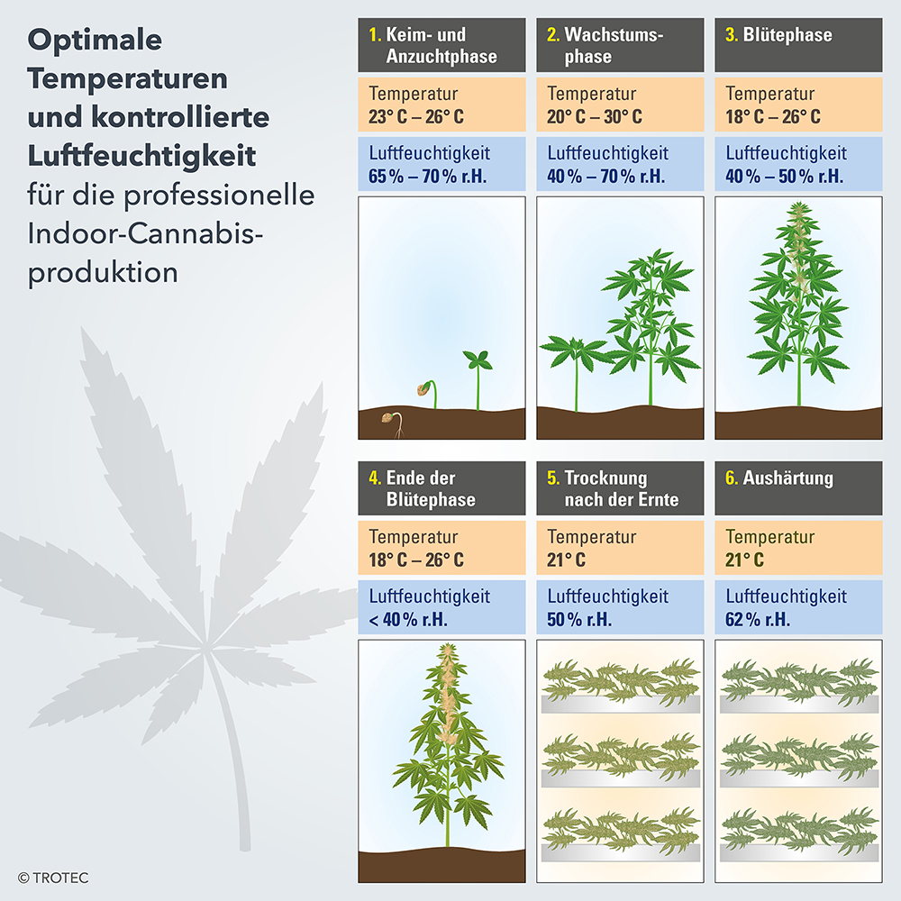 Optimale Temperatur- und Luftfeuchtigkeitsverhältnisse während der einzelnen Wachstumsphasen