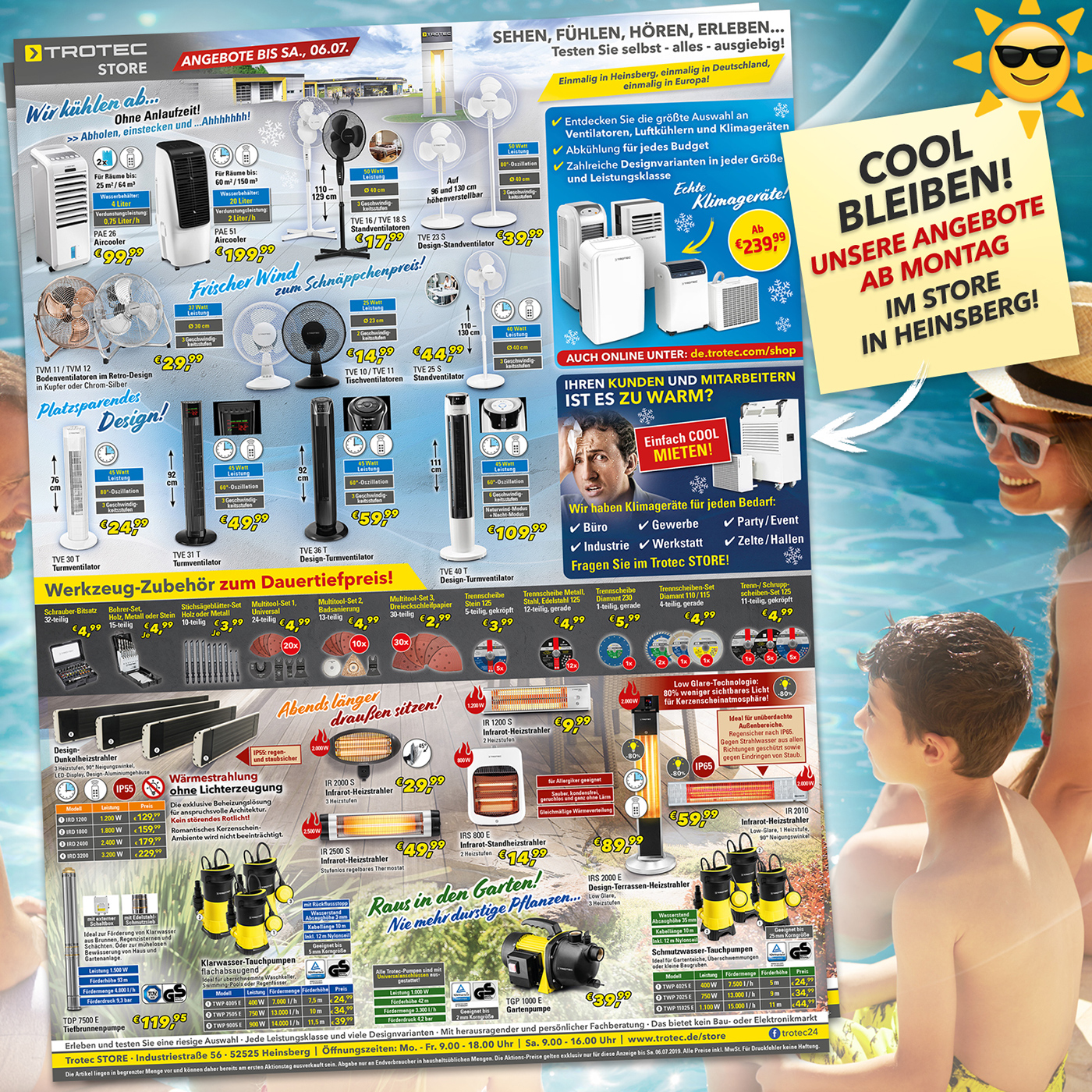 Bei uns gibt es ALLES gegen die lästige Hitzewelle und auch Schnäppchenjäger kommen in unseren klimatisierten Räumlichkeiten nicht zu kurz. Genug geschwitzt!