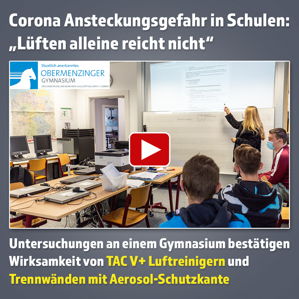 Untersuchungen an einem Gymnasium bestätigen Wirksamkeit von TAC V+ Luftreinigern und Trennwänden mit Aerosol-Schutzkante