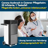 Schützen soll eine neuartige Raumluftreinigungstechnik (TAC V+ mit H14 HEPA-Filterung) aus dem Landkreis Heinsberg. Einrichtungen in Heinsberg waren die ersten, die vom Coronavirus mit voller Wucht getroffen wurden. Doch Stephan Pusch, Landrat des Kreises, hat mittlerweile wieder Hoffnung, dass der Kreis durch eine in der Krise in Heinsberg entwickelte Luftreinigungstechnik schnell wieder zurück zur Normalität findet. Die Ergebnisse verschiedener Heinsberger Studie belegen den hohen Infektionsschutz des neuartigen Luftreinigers, der insbesondere in Pflegeheimen, Krankenhäusern und vergleichbaren medizinischen Einrichtungen das Ansteckungsrisiko über die Raumluft minimieren soll.