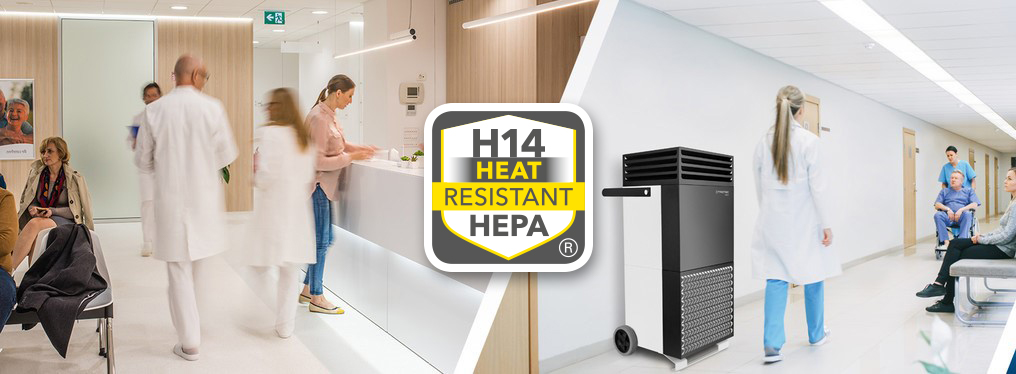 - Des Weiteren werden luftgetragene Viren und Bakterien in einem neuartigen, hitzebeständigen HEPA-Schwebstofffilter zuerst abgeschieden und dann zyklisch, durch thermische Dekontamination, abgetötet. Dieser exklusiv von Trotec entwickelte Spezialfilter der Schutzklasse 14 zeichnet sich durch einen Abscheidegrad von 99,995 Prozent bei Partikelgrößen von 0,1 bis 0,2 µm aus. Dank dieser Eigenschaften werden H14-Hochleistungsfilter selbst in Operationssälen zur Reinluftherstellung sowie in vergleichbar hygienesensiblen Bereichen eingesetzt
