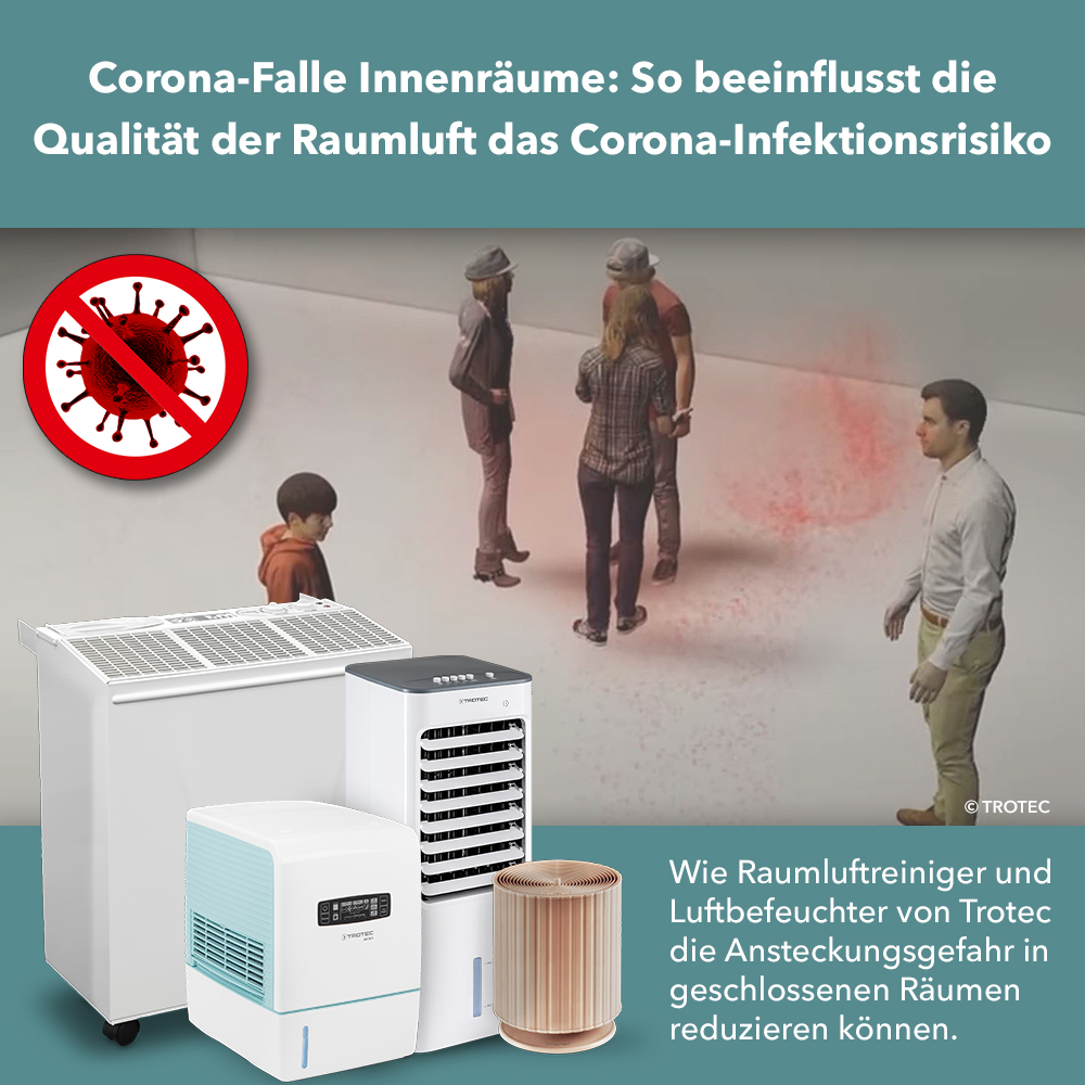 Wie Raumluftreiniger und Luftbefeuchter von Trotec die Ansteckungsgefahr in geschlossenen Räumen reduzieren können.
