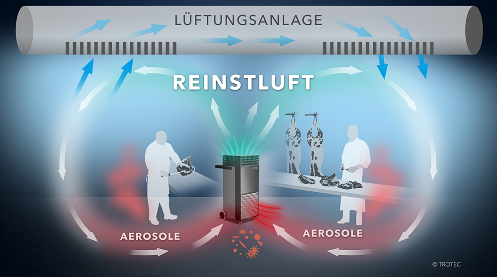 Auch wenn bislang der wissenschaftliche Beweis für die Infektiosität von Aerosolen in der Raumluft fehlte, waren sich führende Virologen und Hygieniker schon länger dahingehend einig, dass Aerosolgemische in der Raumluft einen maßgeblichen Anteil an den Corona-Infektionen haben. Eine gemeinschaftliche Untersuchung des Corona-Ausbruchs bei Deutschlands größtem Fleischfabrikanten Tönnies, durchgeführt durch das Helmholtz-Zentrum für Infektionsforschung, die Uni-Klinik Hamburg-Eppendorf (UKE) sowie das Heinrich-Pette-Institut (HPI) kam zum Ergebnis, dass sich im betroffenen Betrieb die Aerosole über eine Distanz von mehr als acht Metern verteilen konnten. Daher setzt Tönnies inzwischen Hochleistungs-Luftreiniger von Trotec ein, die mit speziellen HEPA-Filtern das Infektionsrisiko über die Raumluft senken sollen.