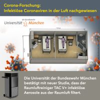 Die Universität der Bundeswehr München bestätigt mit neuer Studie, dass der Raumluftreiniger TAC V+ infektiöse Aerosole aus der Raumluft filtert.